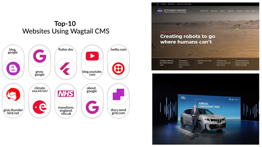 Over the past few years, Wagtail CMS has become very popular, used by big brands like NASA, Google, BMW, and many universities. People choose Wagtail because it is secure, flexible, and perfect for websites with lots of content. Wagtail CMS is a choice for many.